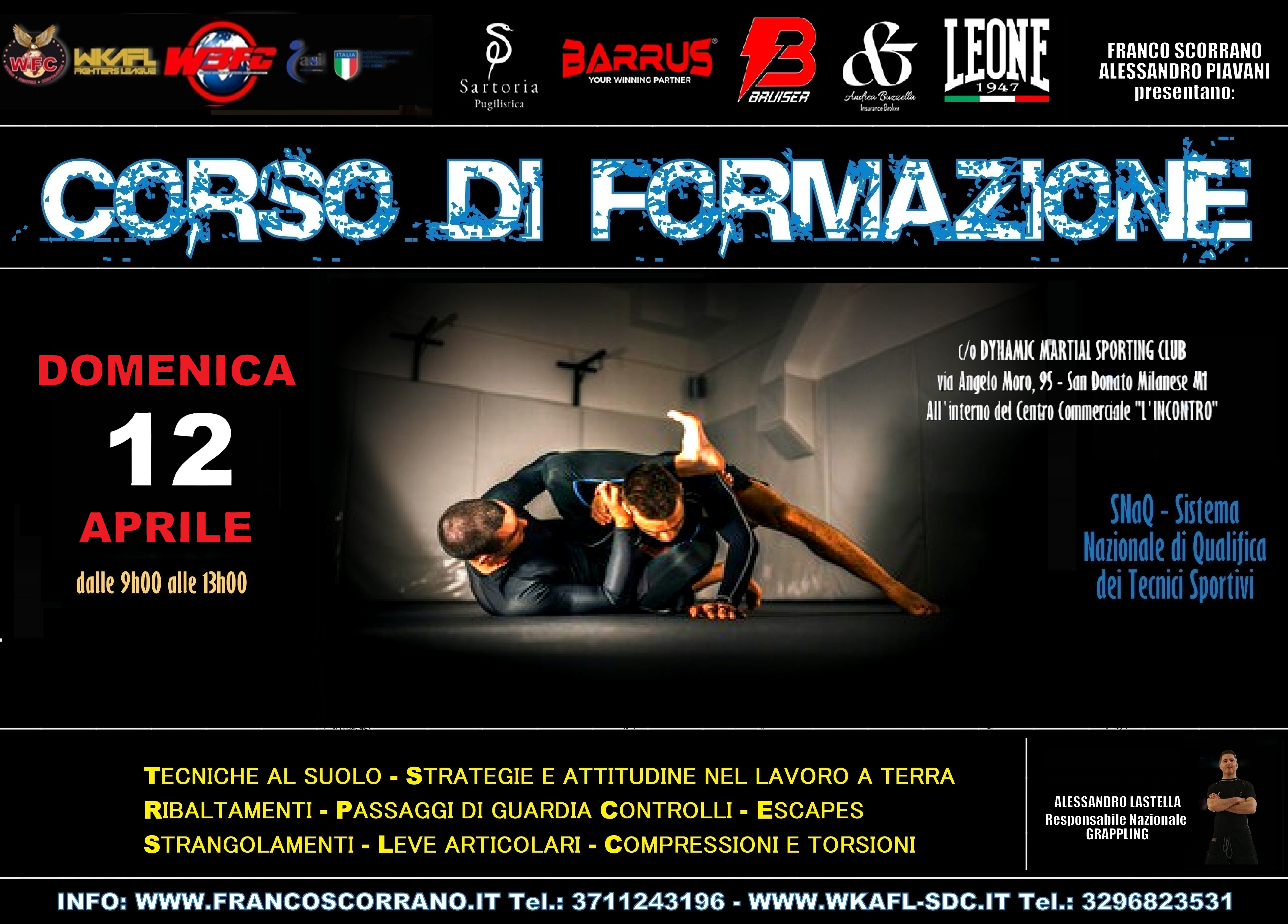 DOMENICA 12 APRILE: CORSO ISTRUTTORI e MAESTRI – AGGIORNAMENTO TECNICO NAZIONALE a cura di: M° Alessandro Lastella dalle 9:00 alle 13:00: Tecniche al suolo, strategie e attitudine nel lavoro a terra, ribaltamenti, passaggi di guardia, controlli, escapes, strangolamenti, leve articolari, compressioni e torsioni - Presso Dynamic Martial Sporting Club - via Angelo Moro 95 - San Donato Milanese MI - All'interno del Centro Commerciale "L'INCONTRO" - NUMERO CHIUSO, PREISCRIZIONE OBBLIGATORIA