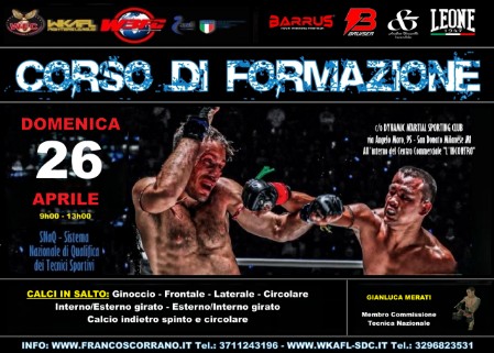 Corso di Istruttore/Maestro e Arbitro/Giudice di Boxe, Kick, K1, Muay Thai, Brasilian Jiu Jitsu, Grappling e M.M.A. Durata da ottobre a giugno. Docenti qualificati: